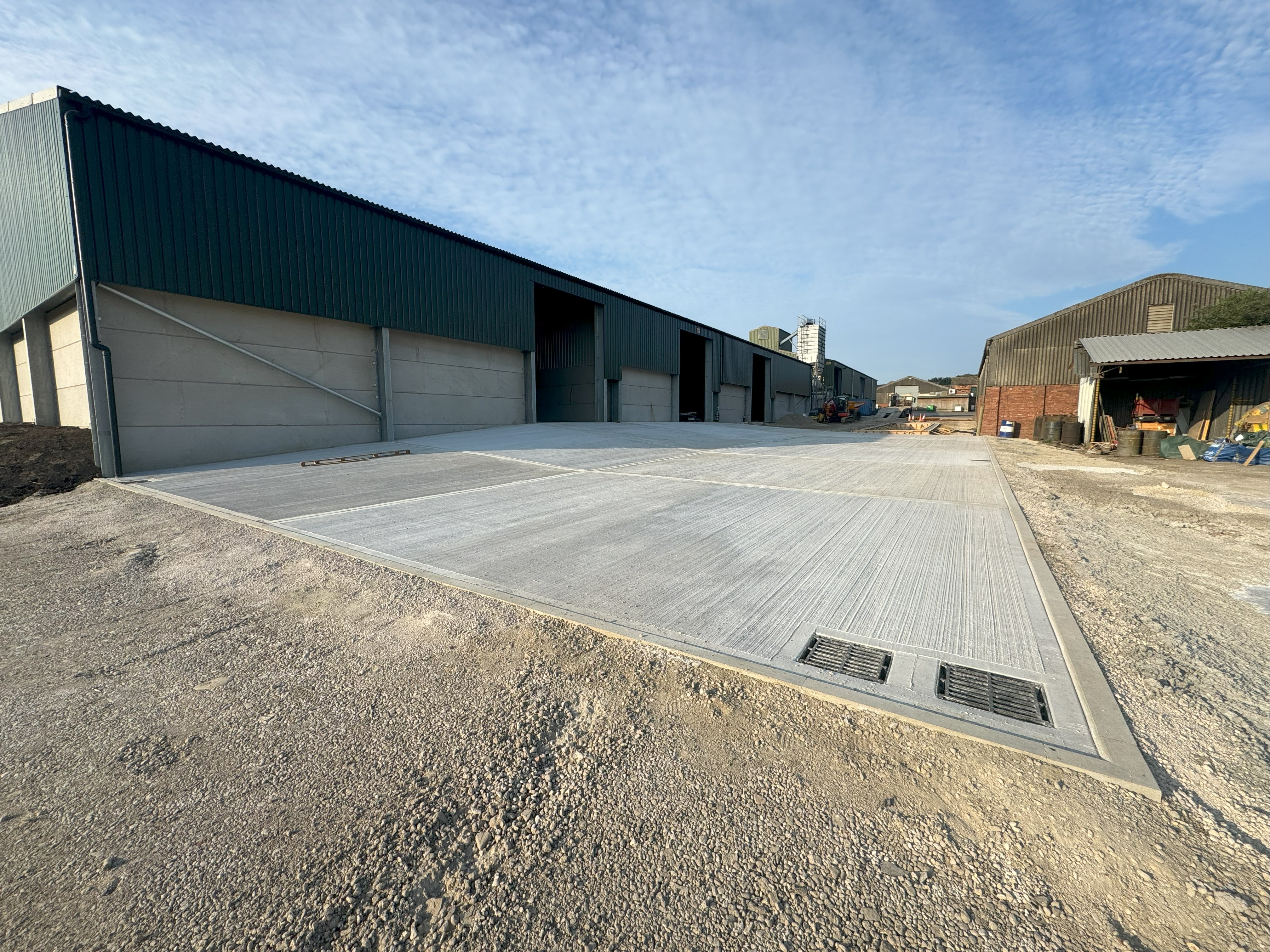 We were engaged, without architectural design or engineered drawings, to provide groundworks to a new large 3-bay grain store and associated external access.